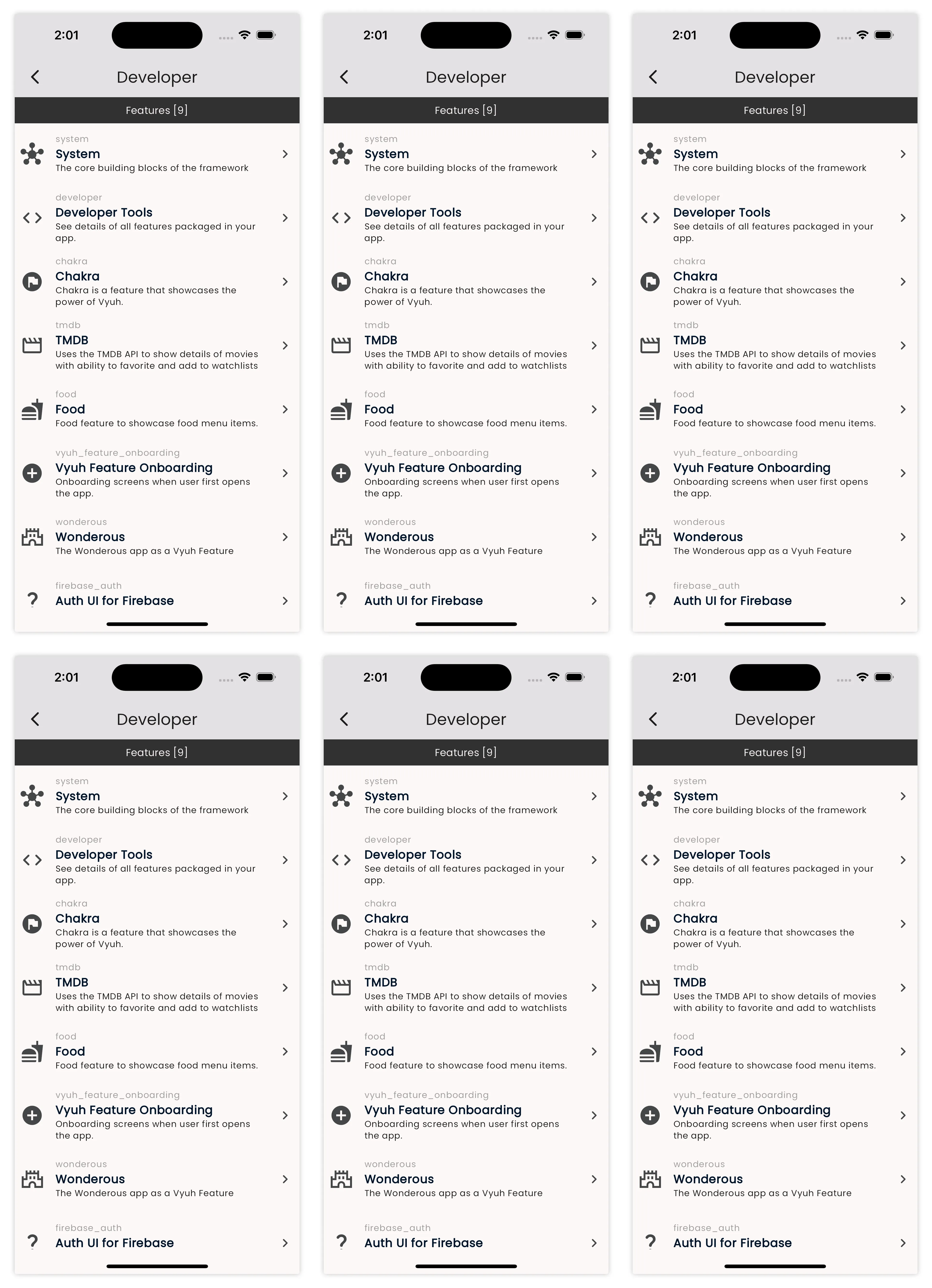 final feature = FeatureDescriptor( name: 'system', title: 'System', description: 'The core building blocks of the framework', icon: Icons.hub,