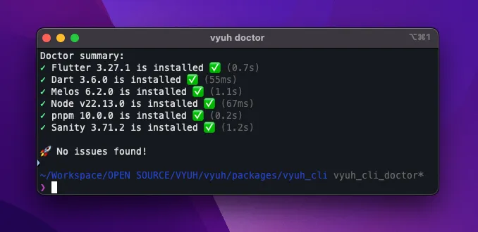 Section titled “Environment checks with Doctor ”The vyuh doctor command helps you verify that your development environment is